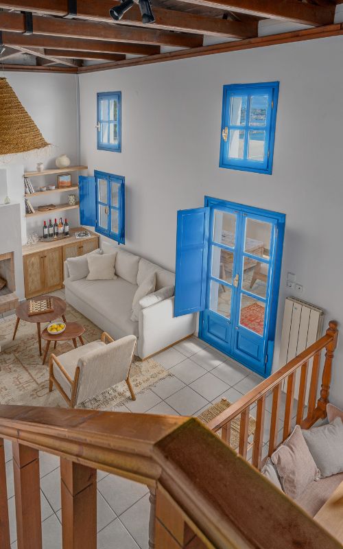 Tucked away among pine trees and olive groves, Azul Boutique Home offers a peaceful escape into nature. Originally part of a traditional donkey stable facility, this charming retreat was fully renovated in 2020, blending country-style warmth with bohemian elegance and antique furnishings. Designed for up to 6 guests, the villa features 2 queen-size bedrooms and a unique open-plan mezzanine loft with a double mattress, accessible via a wooden staircase from the main bedroom.