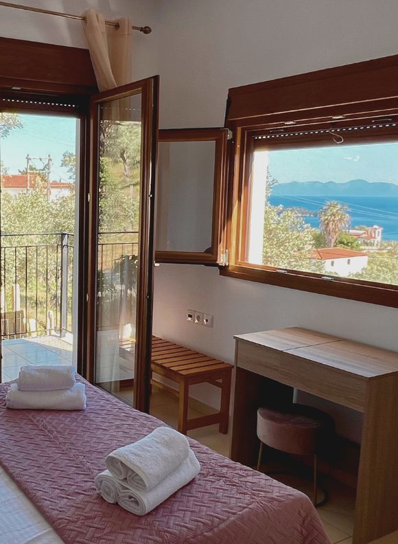 Golden Sunset Villa is thoughtfully arranged to meet the needs of travelers seeking peace without isolation. Just five minutes from the heart of Skiathos Town, it allows you to dip in and out of the action at your own pace.