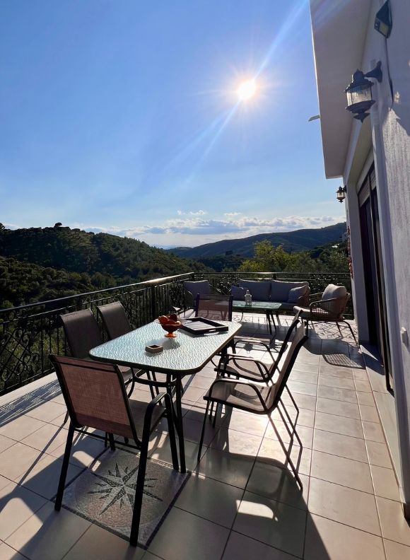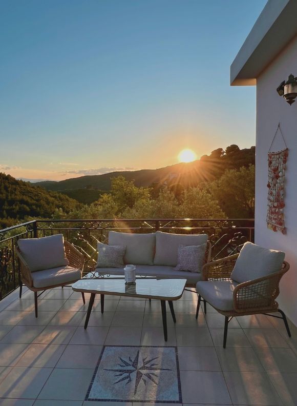 Golden Sunset Villa Skiathos is a peaceful hilltop escape with sweeping views over the Aegean Sea and the surrounding island landscape. Nestled in a quiet area just outside Skiathos Town, this stylish retreat offers the perfect combination of privacy and proximity. With its elevated position, guests enjoy uninterrupted sunsets and a calming sea breeze throughout the day.