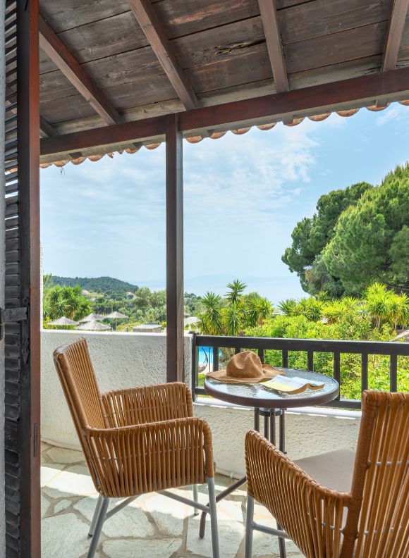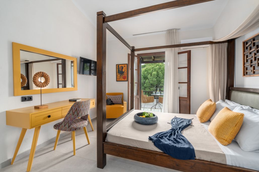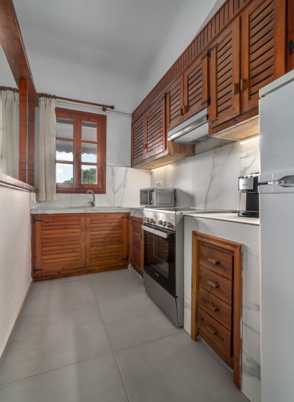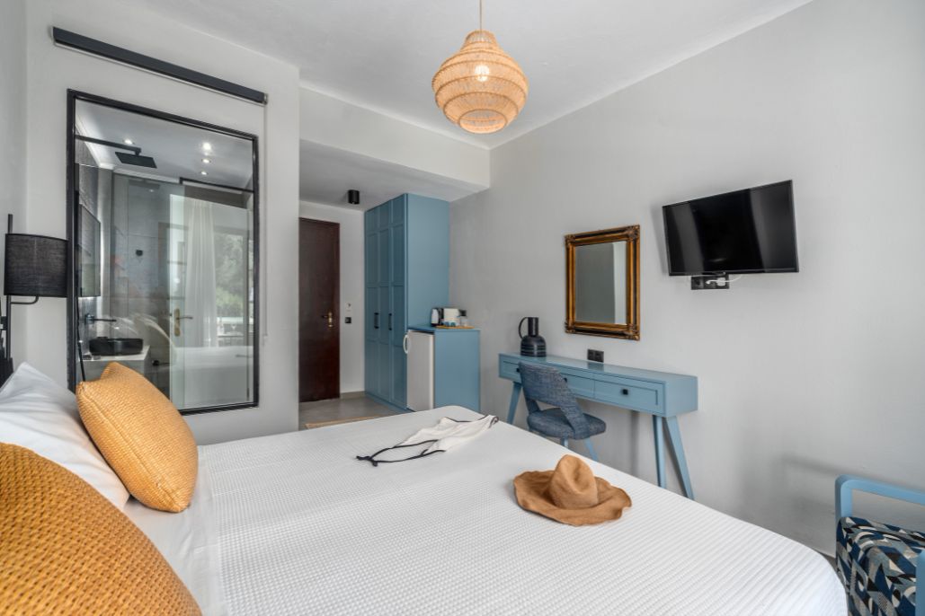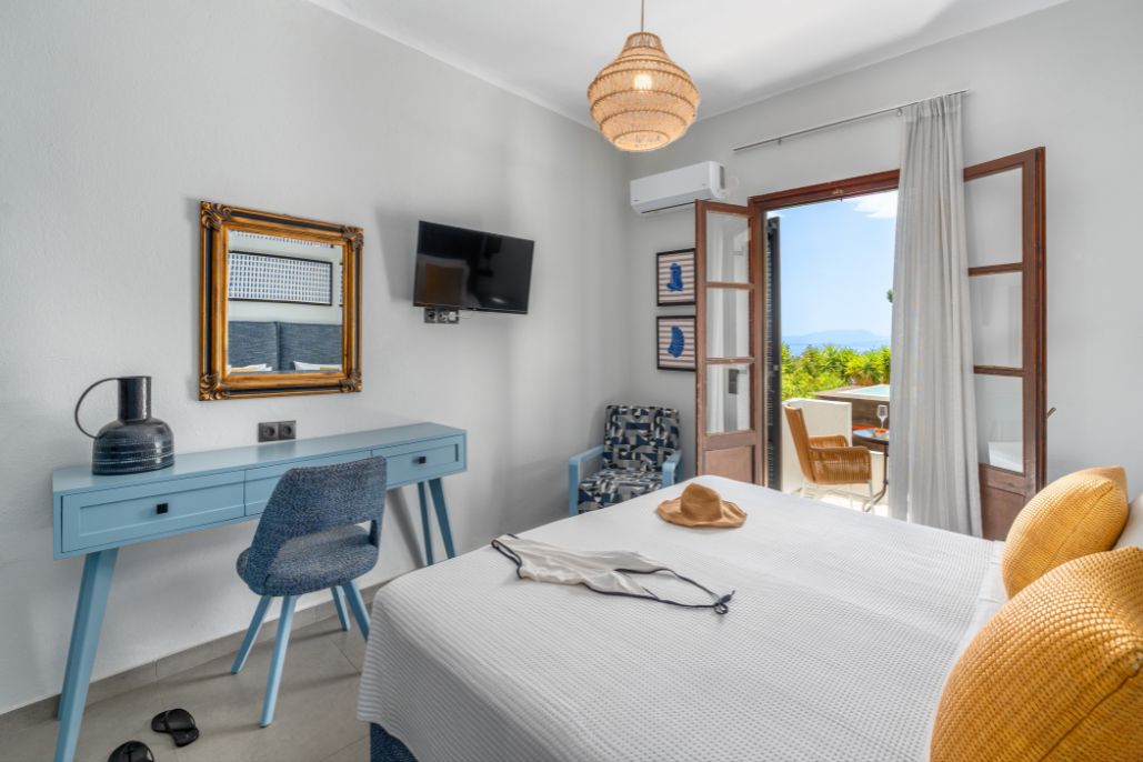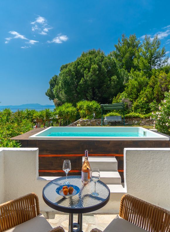 Margi House is a boutique retreat designed for those who seek calm, comfort, and coastal charm. The studios and apartments are styled with soft natural hues, handcrafted details, and large windows that frame the horizon. Each space is thoughtfully equipped with modern amenities, private verandas, and access to a serene pool surrounded by pine trees.