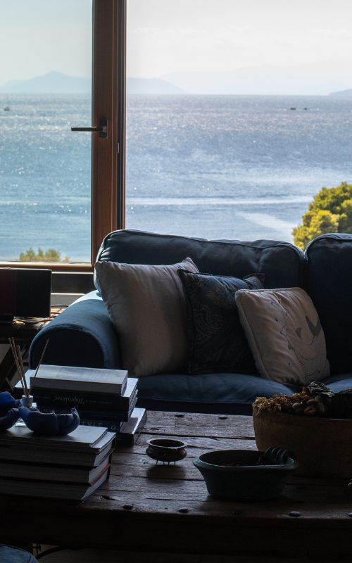 Positioned on top of a hill that once housed an olive grove, Tresor Boutique Home is an independent property recently renovated to combine traditional Skiathos architecture with boho chic elements. The home accommodates up to 4 guests: 2 in the bedroom and 2 more on a comfortable sofa bed in the living room. The two floors include the ground floor with the living room, kitchen, and bathroom, while the upper floor features an open-space suite with a Queen size bed, an antique closet, a balcony, and a spacious veranda.
