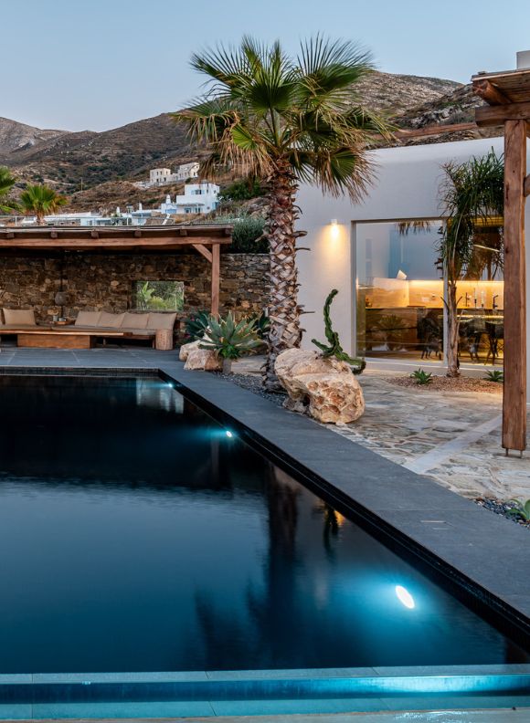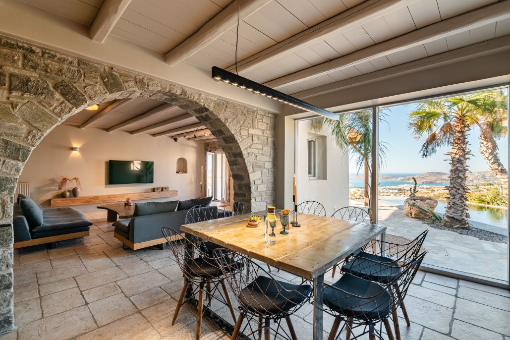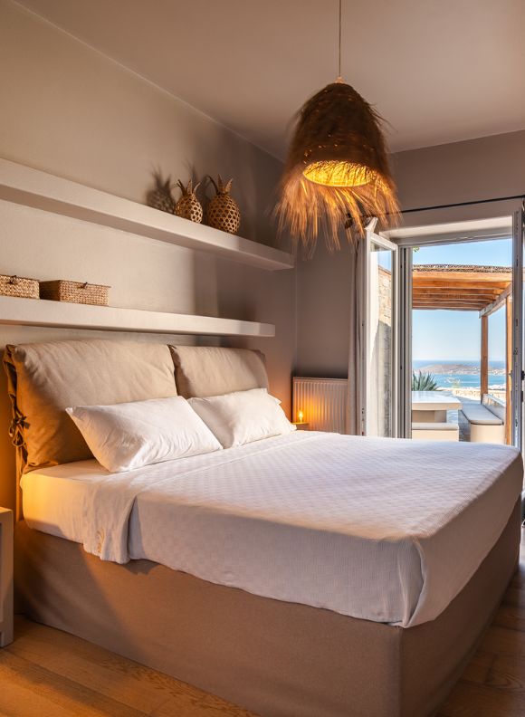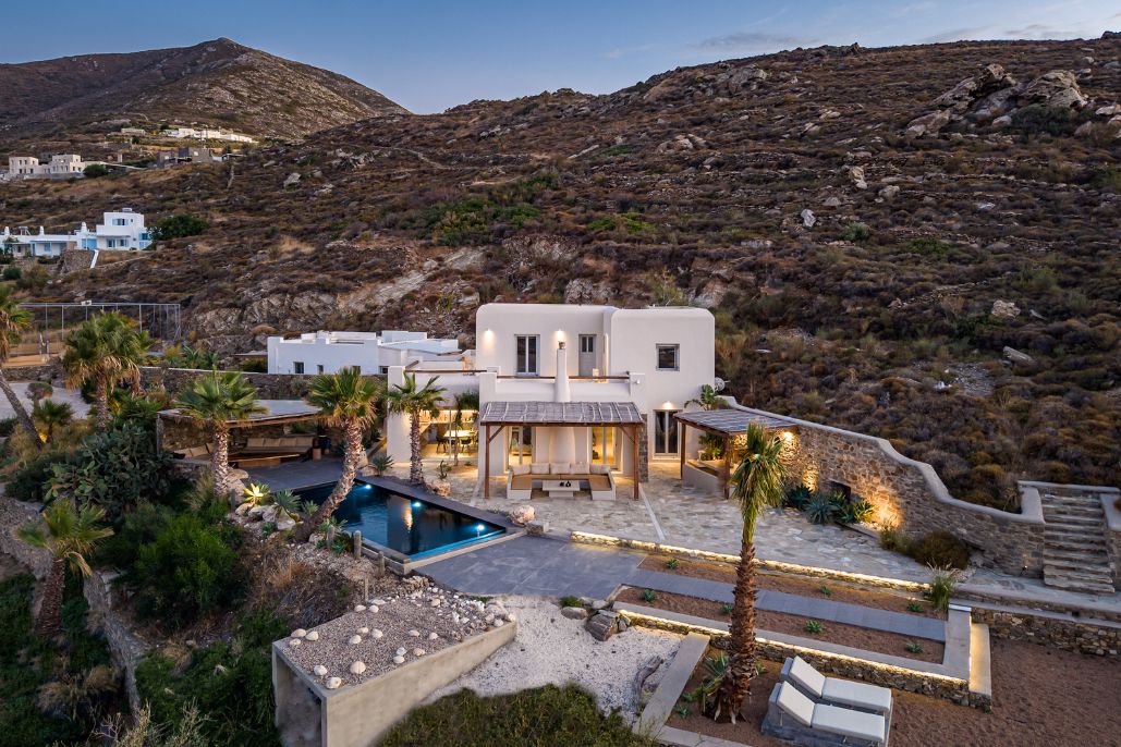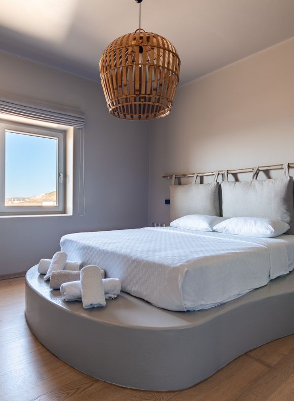 Luxury Villa Delphinus is a stylish 4-bedroom hideaway nestled in the quiet hills of central Paros, offering sweeping views of the island’s natural beauty. Located between the traditional villa located just 3 km from Parikia, this modern villa blends clean architectural lines with timeless Cycladic character, creating a serene atmosphere for up to 8 guests.
