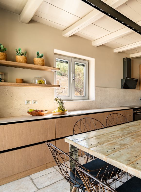 The villa features bright, minimal interiors with natural finishes, an open-plan kitchen and living area, and four serene bedrooms designed for restful nights. Outdoors, a private pool, shaded terraces, and alfresco dining spaces invite you to enjoy the slow rhythms of island life.
