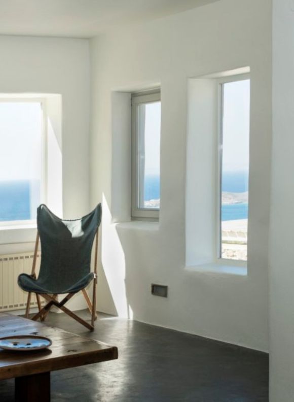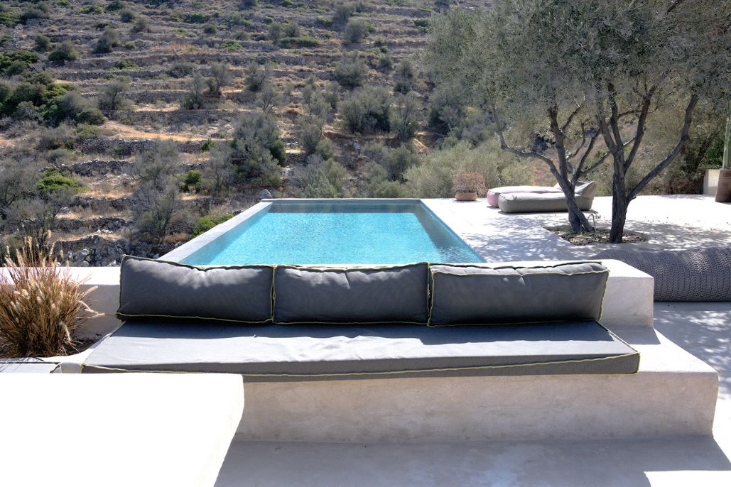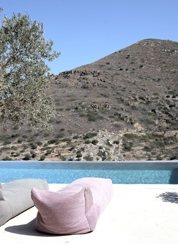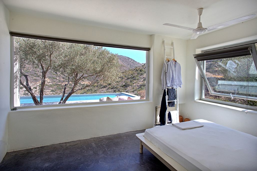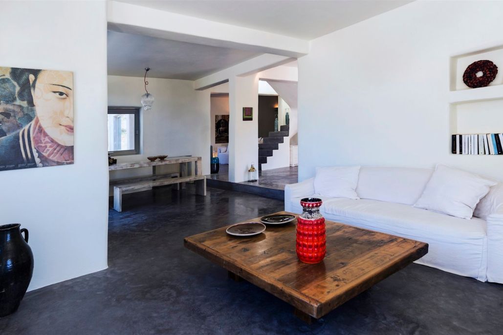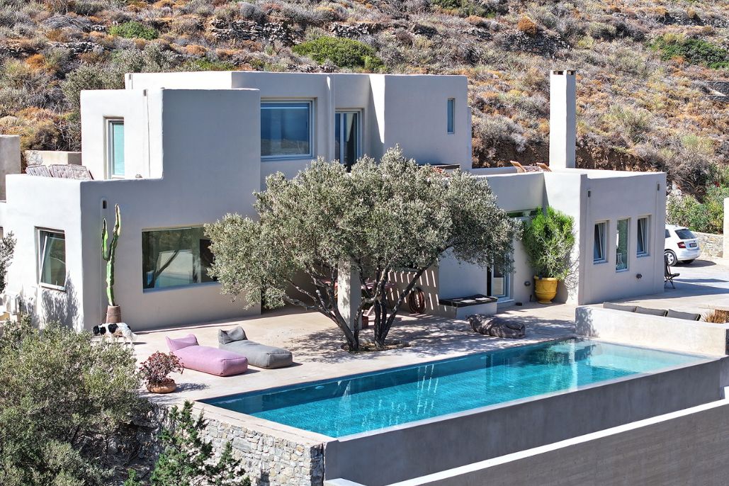 Multiple private terraces and patios allow guests to fully embrace outdoor island living. Whether enjoying morning coffee under the Cycladic sun, relaxing by the pool, or sharing an alfresco dinner with friends and family, the villa’s outdoor spaces offer unforgettable moments. The private swimming pool, sunbeds, and outdoor seating areas create the perfect environment for relaxation while overlooking the spectacular Aegean landscape.